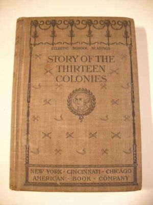 Title (ebay affiliate link): 1898 STORY OF THE THIRTEEN COLONIES Eclectic School Reading Book by H A Guerber