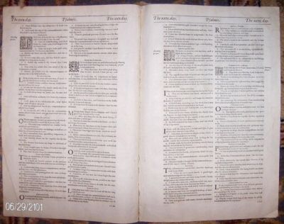 Title (ebay affiliate link): 1612 BOOK OF COMMON PRAYER BIBLE LEAVES/PSALM 119 COMPLETE!