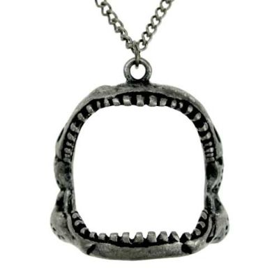 Title (ebay affiliate link): Urban outfitters Unisex Mens Shark Teeth Open skull on Necklace Antique silver