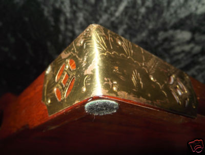 VINTAGE ROSEWOOD TRAY ~ WITH CARVED BRASS CORNERS ~