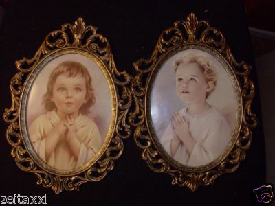 2 BEAUTIFUL VINTAGE ITALIAN OVAL BRASS FRAMEs +PRINTS
