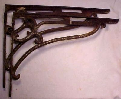 Title (ebay affiliate link): c 1890 Cast Iron Pair General Store ornate Detailed large Shelf Brackets..!!