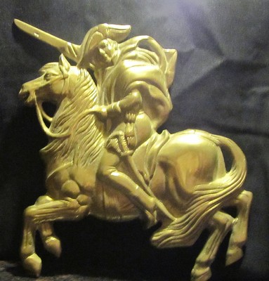VINTAGE BRONZE BRASS WALL HANGING MOUNT FRENCH CAVALRY ON A HORSE WITH A SWORD