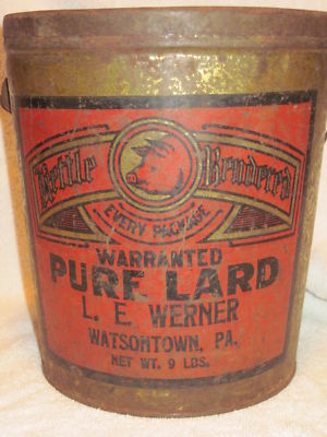 Title (ebay affiliate link): RARE L. E. WERNER (WATSONTOWN PA.) KETTLE RENDERED PURE LARD TIN 9 LBS