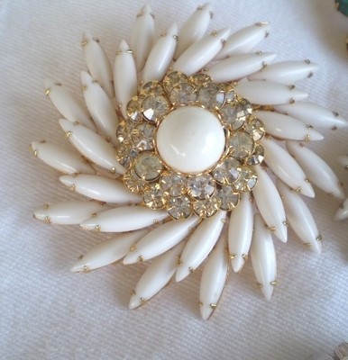 VINTAGE JUDY LEE RHINESTONE MILKGLASS PINWHEEL BROOCH