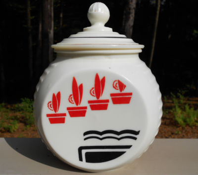 Vintage Art Deco Lidded White Milk Glass Canister