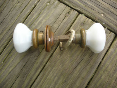 Title (ebay affiliate link): Vintage Antique White Opalescent Milk Glass & Brass Door Knob Octagonal