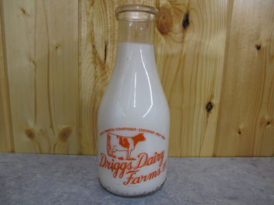 DRIGGS DAIRY FARMS QUART GLASS MILK BOTTLE-SPINACH