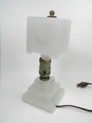 Title (ebay affiliate link): Vintage Art Deco Boudouir Table Lamp White Milk Glass Night Light