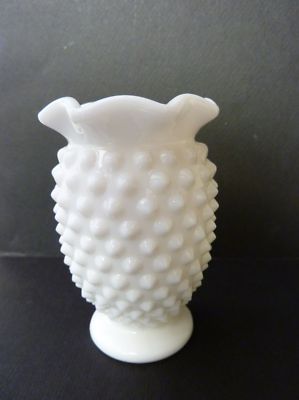 Vintage Fenton Mini Hobnail Milk Glass Ruffled Vase