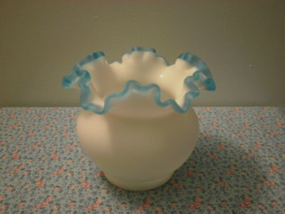Fenton Satin Milkglass Aqua Crest 5" Vase.