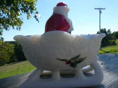 Title (ebay affiliate link): Westmoreland Santa on Sleigh Milk Glass Hand Painted w/ Stamp & Sticker