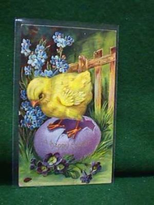 Title (ebay affiliate link): 1911 Easter Postcard Very Cute Big Chick Big Egg Lady Bug Pretty Flowers