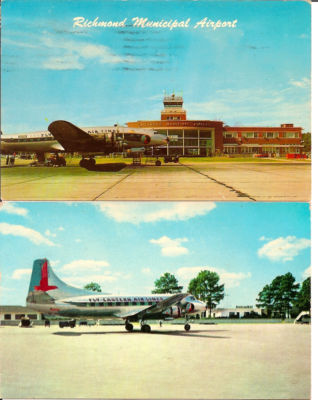 Richmond VA/Augusta GA airport postcards with Eastern airlines prop planes