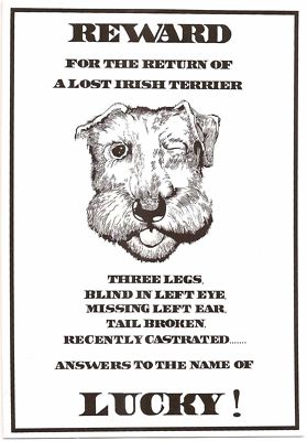 Lucky the Irish Terrier Dog Lost Funny Irish Post Card