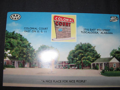 Title (ebay affiliate link): Colonial Court Motel Tuscaloosa AL VINTAGE 1950's POSTCARD