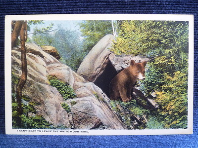 Title (ebay affiliate link): Postcard Vintage Brown Bear Cub Leave White Mountains Old NH