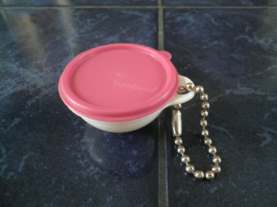 Title (ebay affiliate link): Vintage Tupperware Keychain with Bowl 1 and 3/4" across and 1" deep, Pink/White