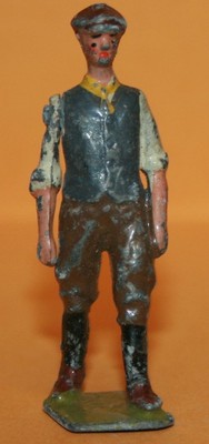 Vintage Britains lead metal Toy Farmer man old Gray Vest Nice