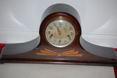 Title (ebay affiliate link): Vintage Antique New Haven Shelf Mantel Chime Clock Inlaid wood