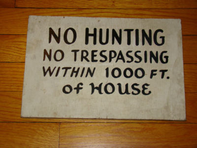 Title (ebay affiliate link): VINTAGE NO HUNTING WITHIN 1000 FEET OF HOUSE WOODEN SIGN ~ JUST FOUND