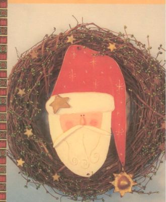WOOD PAINTING PRIMITIVE COUNTRY FOLK PATTERN --GREAT SANTA FACE FOR ON A WREATH