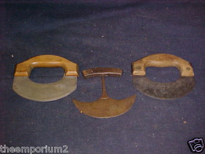 THREE ANTIQUE CUTTERS OR CHOPPERS,,