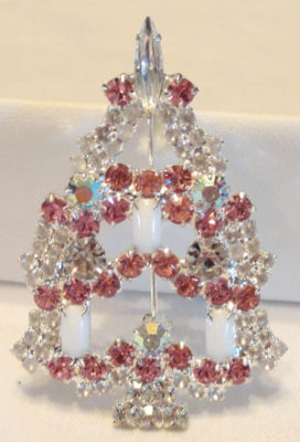 Title (ebay affiliate link): RON Ice Smoke Pink AB Rhinestone Milk Glass Christmas Tree Brooch Pin