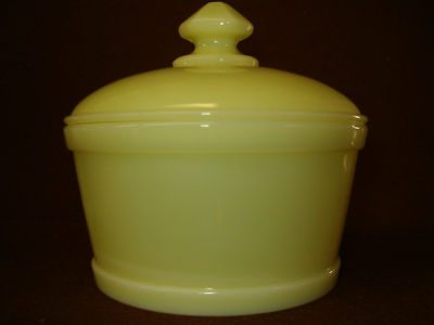 Title (ebay affiliate link): YELLOW VASELINE MILK ART GLASS COVERED BUTTER DISH TUB URANIUM DOMED OPAQUE MINT