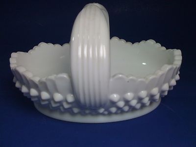 VERY PRETTY HOBNAIL MILK GLASS BASKET IN MINT CONDITION