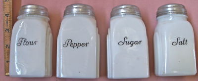 Antique Vintage Old Original Milk Glass Condiment Shakers LOT of Four G1-3