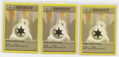 Title (ebay affiliate link): DOUBLE COLORLESS ENERGY X3 BASE SET GOOD