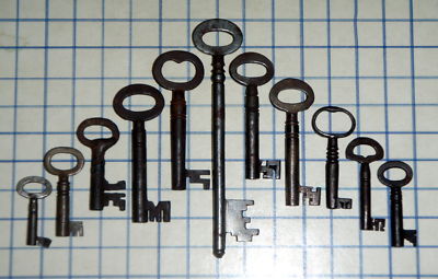 Title (ebay affiliate link): Antique Vintage old Fancy intricate bit skeleton key lot furniture cabinet lock