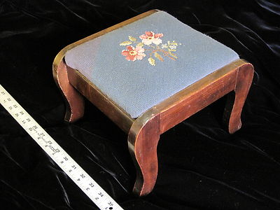 Title (ebay affiliate link): Romantic Vintage Needlepoint Footstool - Blue Rose Peach