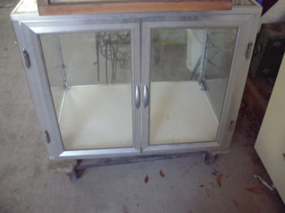 strong sturdy metal showcase front opening doors good condition
