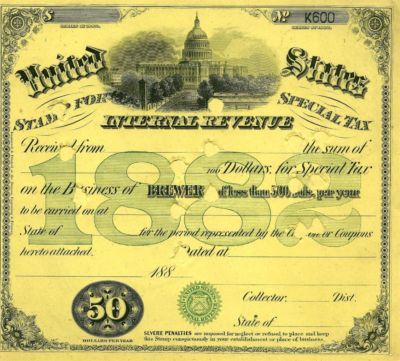 Title (ebay affiliate link): Antique 1882 BREWER Distillery Liquor Alcohol Still License Bar Beer Tax Stamp