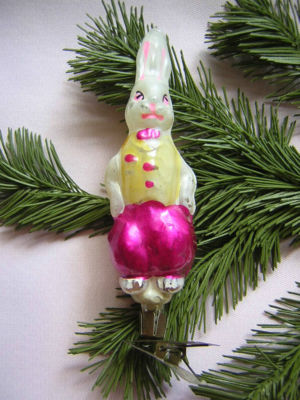 OLD RUSSIAN GLASS CHRISTMAS ORNAMENT RABBIT
