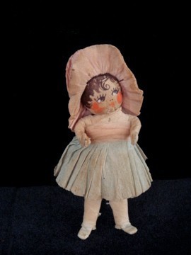Title (ebay affiliate link): VINTAGE ANTIQUE CHRISTMAS ORNAMENT CREPE PAPER GIRL W SUN BONNET & PAINTED FACE