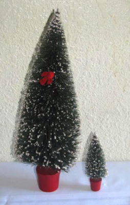 Title (ebay affiliate link): 2 VINTAGE FLOCKED BOTTLE BRUSH CHRISTMAS TREES VERY NICE 15" & 5.5"