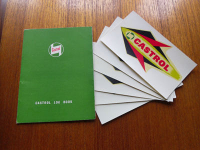 VINTAGE CASTROL LOG BOOK & 6 WATERSLIDE TRANSFERS