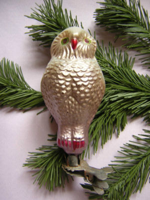 OLD RUSSIAN GLASS CHRISTMAS ORNAMENT OWL