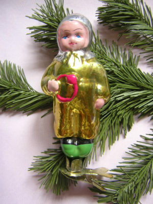 Title (ebay affiliate link): OLD RUSSIAN GLASS CHRISTMAS ORNAMENT . GIRL WITH TOY