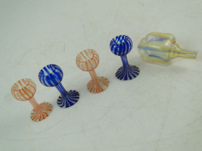 Title (ebay affiliate link): Vintage German Ribbon Art Glass Stemware Miniature Wine Goblet Antique Doll