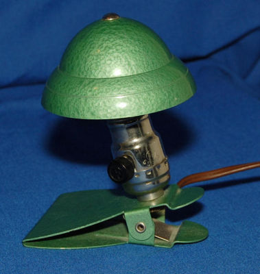 Title (ebay affiliate link): ANTIQUE GREEN ANODIZED ALUMINUM BOOK READING LIGHT WITH CLAMP CIRCA 1950s FINE