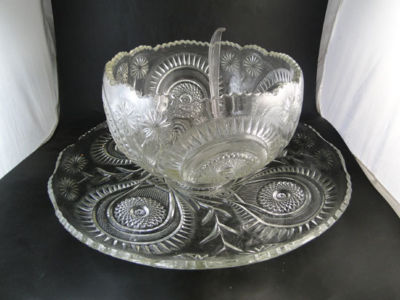 Antique EAPG Slewed Horseshoe US Glass Punch Bowl Platter Tray Set