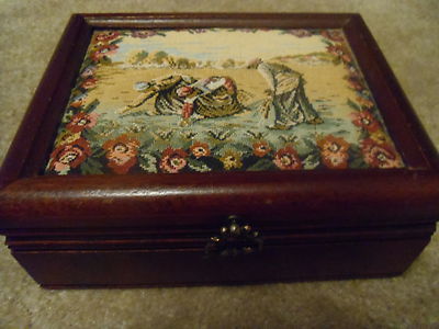 Antique Wooden jewelry bow wooven picture on top ! 2pc