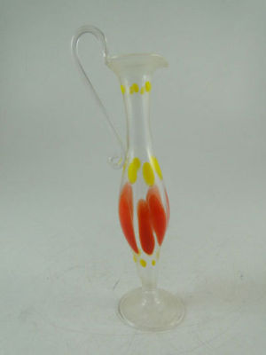 Vintage German Ribbon Art Glass Bud Vase Ewer Pitcher Orange Yellow Antique