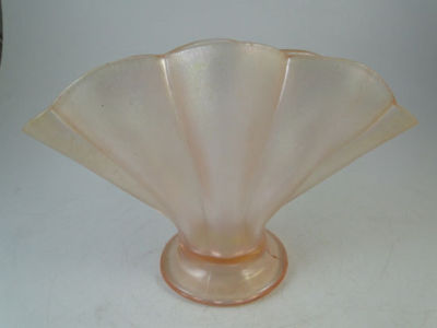 Antique Pink Depression Glass Fan Clam Shell Frosted Vase Iced Table Vintage
