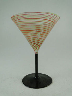 Vintage German Art Glass Martini Cup Wine Stemware Red Yellow Swirl