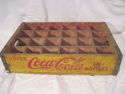 Title (ebay affiliate link): OLD WOOD-WOODEN COKE BEVERAGE POP SODA CRATE ADVERTISING BOTTLE CARRIER YELLOW